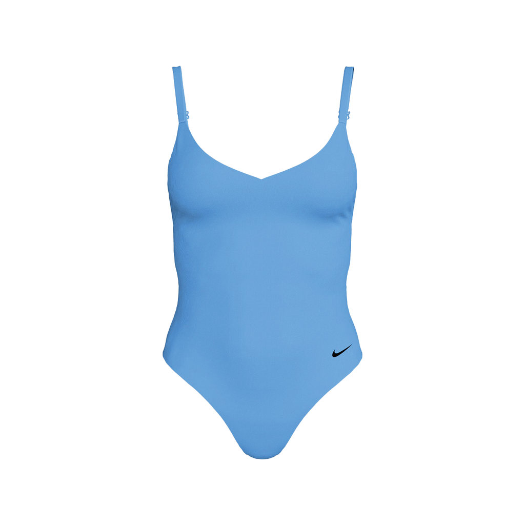 Dive into style and comfort with the Nike Swim Women's Essential V-Neck One-Piece Swimsuit. Perfect for both serious swimmers and leisure seekers, this swimsuit combines innovative design with eco-friendly materials, ensuring you look and feel great in the water.